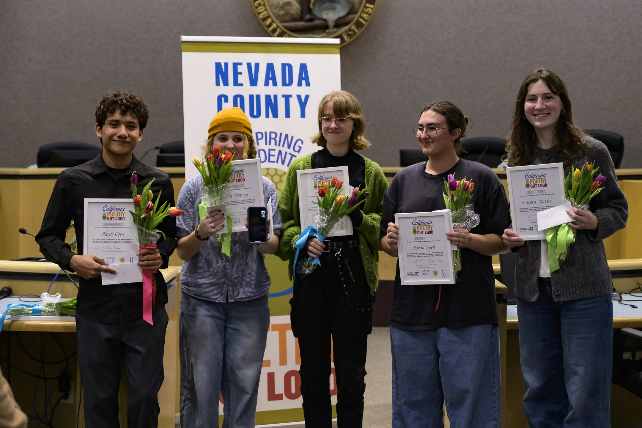 Poetry Out Loud is a National Recitation contest that, for us, begins right here in Nevada County classrooms. Through Poetry Out Loud we help high school students master public speaking skills, build self-confidence, and learn about literary history